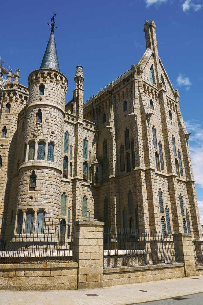 В отличие от барселонских творений Гауди, Епископский дворец в Асторге выдержан в классическом нео-средневековом стиле. Окна, похожие на бойницы, стремятся вверх, как и все здание из белого гранита. Снаружи замок, внутри это просторная церковь, вся залитая светом. С чудесными витражами окон.