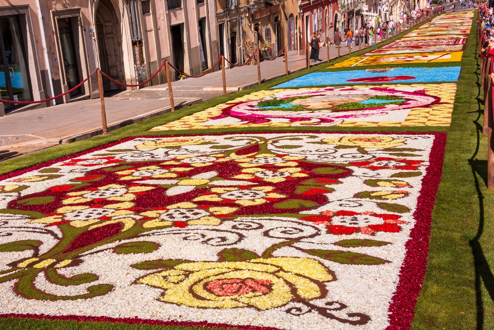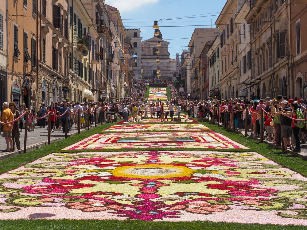 Праздник цветов в Дженцано-ди-Рома считается самым древним в Италии - он проводится в честь праздника Тела и Крови Христовых. Традиционно в этот день люди несли в церковь букеты и венки - а потом перестали сдерживать себя и в восемнадцатом веке выжили первую цветочную картину прямо на мостовой.