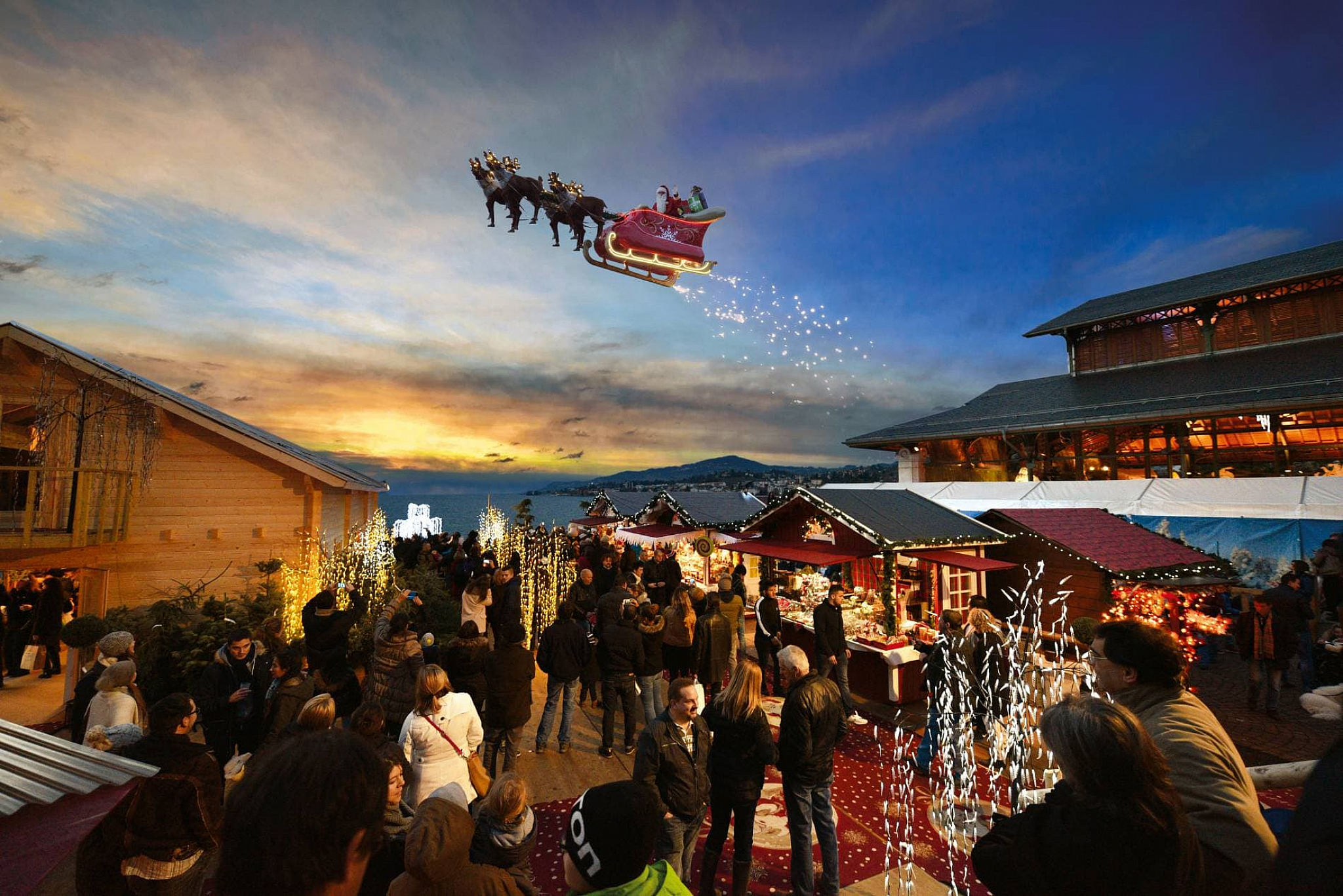 Летающий Санта-Клаус — знаменитая аттракция на Рождественской ярмарке в Монтрё на берегу Женевского озера в Швейцарии. Каждый вечер (обычно в 17:00, 18:00, 19:00) Санта на санях с оленями пролетает над набережной, приветствуя посетителей, а по выходным — и в 16:00.
