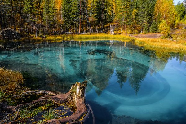 Утром поездка (10 км) к Гейзерному озеру. На дне озера находится гейзер, выбрасывающий глину и песок, которые окрашивают воду в оттенки зеленого, бирюзового и голубого цвета. Пешеходная прогулка через тайгу до берега озера.
