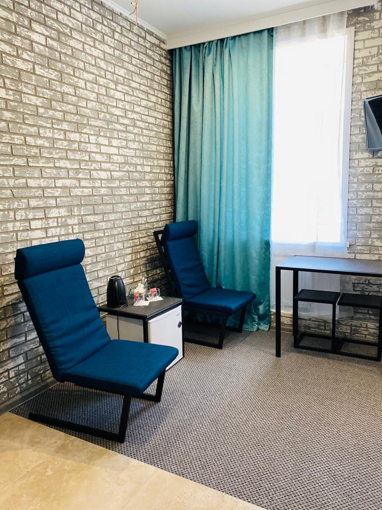 В номерах: В каждом номере есть душ и свежие полотенца, фен, чайник, холодильник.